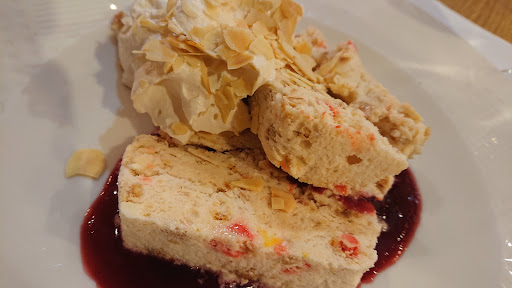 On aurait espĂ©rĂ© ĂȘtre un peu rĂ©conciliĂ©s avec les desserts⊠mais non. Jâavais pris un menu, donc dessert inclus. Jâai Ă©vitĂ© le cafĂ© gourmand pour ne pas me dĂ©goĂ»ter dĂ©finitivement du cafĂ©, et jâai bien fait. Ma sĆur, lâa pris⊠et nâa rien pu avaler. Financier Ă lâamande sĂ»rement cuit dans le mĂȘme beurre que les encornets, nougat en sachet, panna cotta Ă lâaspect douteux, macaron dur, crĂšme brĂ»lĂ©e fade, chantilly en boule⊠Beaucoup de choses dans lâassiette, mais rien de mangeable.