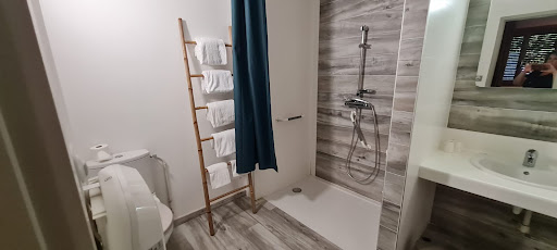 Read moreTrès bon accueil à l arrivée, une chambre au rez-de-chaussée spacieuse mais dommage qu il n y ait pas de clim , juste un petit ventilateur pour 3 lits.....dur dur avec la chaleur. Les voisins du dessus sont très présents avec le bruit des pas sur le plancher en bois. Le bémol qui gêne quand même c est le système d interrupteur de la salle de bain et WC....détecteur de mouvement qui n est pas assez long aux WC ou pendant la douche ...on se douche dans le noir et à l inverse la nuit à chaque fois qu on va faire pipi ....c est Versailles pour toute la chambre grâce à une salle de bain avec une porte vitre...