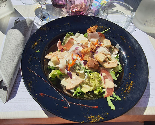 The environnement outside was lovely: full of flowers! You feel like you are in a garden. The dishes were served at the right speed. Our waitress was nice. Their menu is not too busy and not overwhelming with too much choice. I would recommend to go !