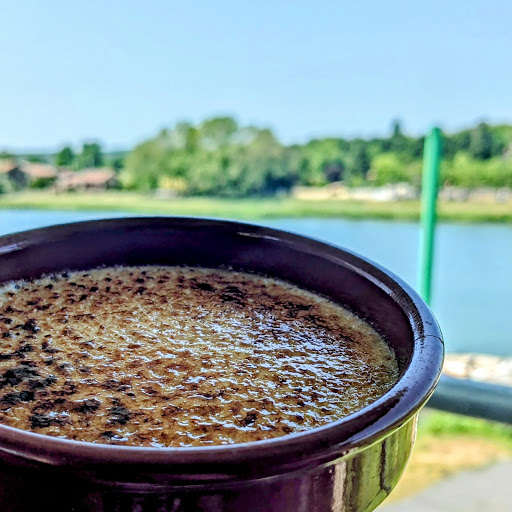 Read moreArrivés à 5 avec 2 bateaux, avons passé un très bon moment. Le patron très sympa nous a fait une place malgré le restaurant complet. Nous avons beaucoup apprécié. Puis, Installés avec vue sur la Saône nous avons aimés les mets servis avec gentillesse et pertinence par un jeune garçon qui n’avait pas les 2 pieds dans le même sabot! Le service fut rapide, agréable, souriant et renseigné. Les entrées étaient très correctes, assaisonnées à la vinaigrette à l’huile de noix qui rehausse agréablement les ingrédients. Les autres plats furent tout autant appréciés: tartares, fritures et surtout les fameux bréchets persillade que j’avais hâte de goûter tellement les clients sont dithyrambiques dans les commentaires des avis. Même les frites bien cuites et croustillantes à souhait s’alignaient a l’excellence des autres ingrédients. Les desserts: crèmes brûlées au caramel délicieuses, même si le sucre brulé manquait un peu de croquant. Les glaces servies avec de la chantilly( 0,50€ de supplément seulement) furent également appréciées. Avec 4 cafés, une excellente bouteille de beaujolais village et une bouteille d’eau minérale, la facture est annoncée à moins de 150€ pour cinq. Qui dit mieux! Nous reviendrons sans aucun doute, à pied, à cheval, en vélo, en auto, en camping car ou… en bateau plus sûrement. Bravo et faites perdurer vos...