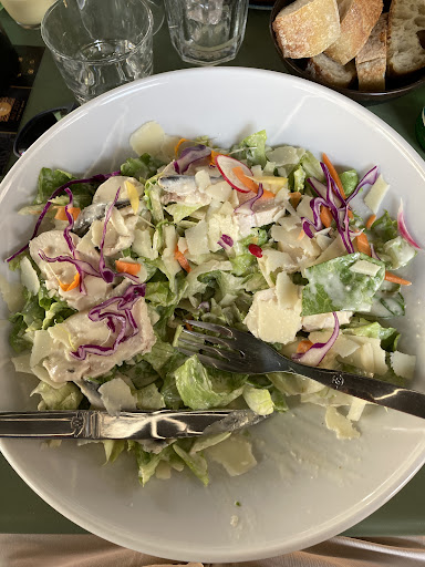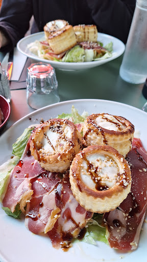 On a pleasant square in Bourg en Bresse. The Salade Chevre Chaud avec Jambon Cru was wonderfully presented (the warm melted cheese was in "bouchees a la reine". Succulent but the serving was huge and I couldn't finish the green salad. Not sure about the other food items (I saw hamburgers on another table that looked slightly burnt... but maybe it was at the request of the customers). Friendly and efficient staff. Very busy at lunchtime when I went there. Next to a spherique fountain with colourful balloons. Enjoyed my salad...