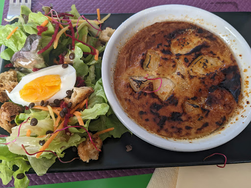 Read moreJolie décoration et esprit créatif sont au rendez-vous dans ce restaurant. Plats (sûrement) bons. Cependant certains serveurs manque d’expériences et de ce fait, de professionnalisme. Une jeune serveuse (sans meme nous dire bonjour) nous a dit complet à 12h30 et plusieurs tables étaient libres, nous sommes revenu à 14h et elles l’étaient toujours (des amis présents dans le restaurant nous ont confirmé que personne ne s’y était installé) sachant que nous n’étions que 2. De retour dedans on ne nous a pas demandé si vous voulions un café ou quoi que ce soit. Dommage... D’accord c’était un samedi en plein rush mais il faut rester chaleureux et accueillant avec ses clients. PS: nous nous y étions rendus pour une exposition, d’où le fait d’être...