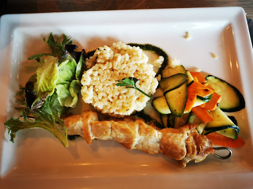 Read moreQuelle déception... Les serveuses sont très agréables mais la cuisine laisse à désirer. Après une entrée parfaitement réussie avec un tataki de thon très généreux et gustatif, quelle ne fut pas ma déception à l'arrivée de mon unique brochette de volaille comme plat principal de viande (brochetteS dans votre menu, où est passée l'autre ??? Pour 17€ c'est léger). Je me lance à goûter et là, je ne sais pas. Honnêtement, je ne sais pas quoi dire quand je commence à couper mon poulet qui déjà visuellement est comme fossilisé sur mon pic à brochette... Mais ce n'est pas qu'une impression. Mon couteau se tord à couper la viande, mes dents je n'en parle pas... Ça me contrarie de gaspiller, d'autant plus de la viande, donc je vais mettre 20 minutes à tenter de terminer mon assiette, je m'étouffe tellement c'est sec... Je l'ai mangé comme si chaque fourchette était un cachet, avec mon eau (c'est dire..), le risotto est également trop cuit et je ne peux donc pas compter dessus pour m'aider à apprécier le plat... J'espère que le dessert me fera un peu oublier le poulet. Je prends une coupe Canada cool. La chantilly est excellente, mais je me retrouve avec 2 boules de glace (je ne comprends pas le prix de 7,50€ alors que les glaces 3 boules sont affichées à 5,90€)... Mais le fameux concassé de pop-corn, n'attendez rien d'autre qu'un popcorn éclaté et avec cela, 7 autres grains de maïs intacts, de quoi vous casser une dent... J'avais déjà été déçue, mais je pensais que c'était peut-être un mauvais jour... Or ce n'est pas le cas. C'était bien la dernière fois que j'y mettais les pieds. Dommage car tout est là pour satisfaire le client avec un bel établissement et des serveuses charmantes, mais la cuisine en dents de scie, pour...