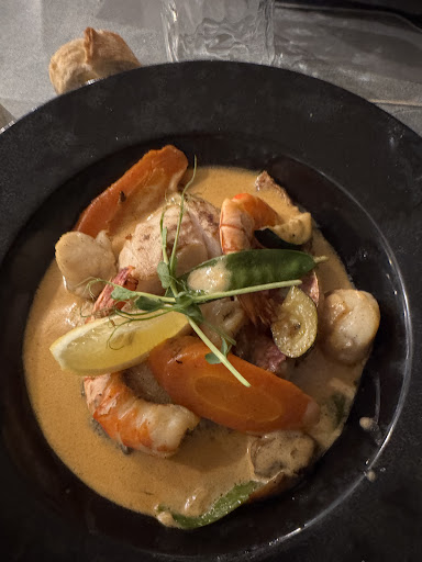 Cependant, le plat principal a sauvé l'expérience. La parillada de la mer a été une véritable révélation ! Tout était parfait : la cuisson des poissons, la variété des crustacés et poissons et la sauce qui l'accompagnait était absolument délicieuse. C'était un véritable régal pour les papilles, et chaque bouchée était un plaisir.