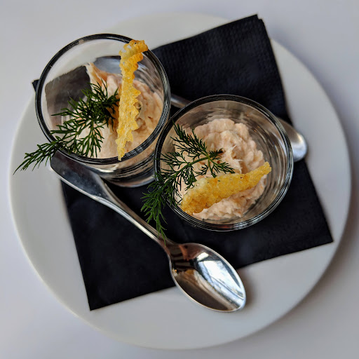 Read moreWent on spec for a weekday lunch and chose the (good value) menu du jour, which on this particular winter's day offered up chestnut soup (pretty good if somewhat under seasoned) a choice between chicken and fish (we picked the latter; it came with lentils and a creamy sauce; mine was so underdone it was verging on the raw) and what was described as chocolate tart but was in fact a delicate disc of shortbread topped with a smaller disc of something faintly citrussy, topped with artsy blobs of chocolate mousse. It was very pretty but I'd have preferred actual chocolate tart! We drank a carafe of (good) wine and scoffed all the excellent bread as well as the little treats we were presented with while we waited for the starters to arrive. Coffee (2.50) also came with treats....