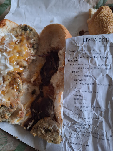 Sandwich fait à la va vite. Le fromage n'a même pas le temps de fondre. On nous compte des suppléments sur les contenus alors que des ruptures de produits et qu'on ne peut mettre ce que l'on veut. Ok on est un samedi, il y a peut-être eu du monde, mais pas d'affolement à une éventuelle remise en place. Allez, rupture de salade alors que c'est un ingrédient de base... le prix lui n'a pas baissé! Installation et découverte d'un sandwich froid ( avec un fromage non fondu cela était prévisible ). Des rostis froides, désolé cela ne le fait pas. Obligé de refaire la queue (3 sandwiches à chauffer), on patiente car d'autres clients sont en commande (mais pas de rush). Vu le temps de retour nous pensions nous régaler avec un sandwich passé de nouveau au four et chaud. Que nenni, même si c'est de saison il ne fallait pas croire au père Noël. Retour des sandwiches tièdes passés au micro onde.Aec un pain ramolli qui ne tient plus en main ramolli par les ondes, des rostis molles et st nectaire qui a juste eu un peu chaud. Bref on est loin d'un instant gourmand. Mais tout n'était pas si noire, il restait pour une des rares fois le soir des cookies noix de pécan. ( mais pas ceux tout chocolat, faut pas pousser quand même) et le ratio mix des boissons à la fontaine était correct. Générique de fin, il n'y aura...