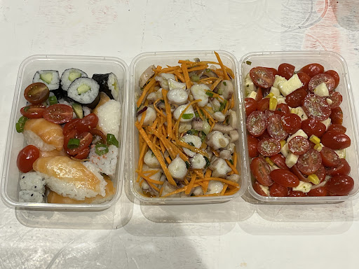 Je m'y suis rendue en me fiant aux avis positifs et à une note de 4,4/5, mais j'ai été très déçue. Je suis partie sans manger : hors de question de payer pour des frites et des calamars que l'on peut préparer chez soi. Arrivée vers 12h30, il n’y avait déjà presque plus de sushis. Un serveur nous a assuré qu’ils allaient en remettre, mais cela n’a pas été fait.