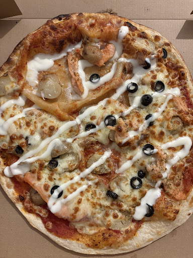 Pizzas vraiment sans saveur⊠la pĂąte est sĂšche et dure. La garniture est fade. La taille de pizzas pour une « Grande » est quand mĂȘme discutable. Et surtout le prix est exorbitant ! Quasiment 16⏠pour une pizza avec 3 pommes de terre et de la viande hachĂ©e, qui plus est trop cuiteâŠ.Vraiment, passez votre chemin vous trouverez bien...