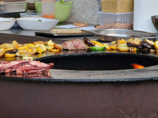 Outdoor cooking is fun to watch and also good menu with very fresh and tasty produce.