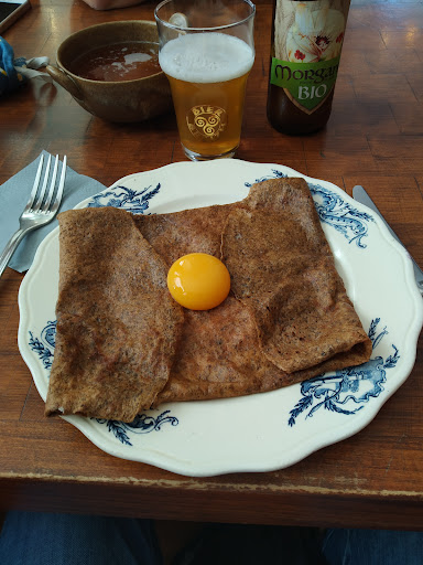 Read moreExcellente crêperie, tout est local, des assiettes aux produits utilisés dans les crêpes, galettes favorisant ainsi le travail des artisans locaux. Sans parler des céramiques et objets d'art et utilitaires qui y sont vendus , tous destinés à soutenir des artistes bretons. J'adore ! La patronne est très chaleureuse pour ceux qui sauraient prendre le temps d'échanger avec elle. Elle travail seule donc un peu de solidarité et de chaleur humaine sont appréciés ! J'y retournerai sans aucun doute ! Concernant les critiques sur les carafes, je trouve normal de contribuer à l'effort du commerçant qui peine déjà à se sortir un salaire ! Plutôt que boire de l'eau au resto faites vous plaisir et commandez un...