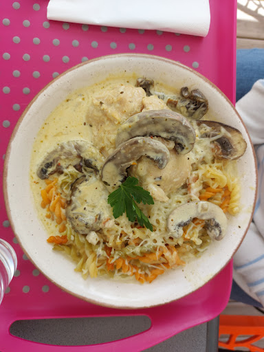 Quelle belle surprise, quel accueil ! Deux personnes chaleureuses, simples et souriantes nous ont aimablement reçues, expliquant le concept : pas de carte fixe, des plats du jour avec des produits frais, en formule ou non, promettant ainsi une cuisine de qualité. Vous prenez votre plateau, vous vous installez où il y a de la place (dans une charmante terrasse couverte, lumineuse, chauffée et décorée pour notre part) et ils viennent vous servir.