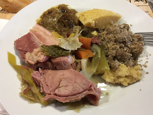 Une petite équipe dynamique et un seul choix de menu: Crudités aux choix en entrée et plat principal breton « Le Kig Ha Farz » plus un petit dessert classique ( glaces-salade de fruit-far breton)