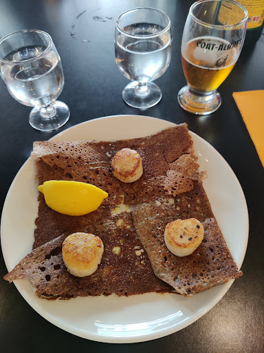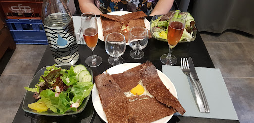 Une très bonne crêperie. Avec ma compagne, nous nous sommes régalés avec des crêpes de bonne qualité (photo ci-dessous : une crêpe forestière et une crêpe chorizo-pommes de terre avec accompagnement salade et kirs). Toutefois, je retire deux étoiles pour deux raisons :