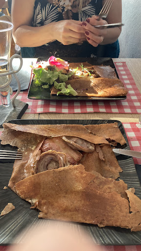 Read moreArrivés à 19h20, nous nous installons en terrasse, avec une vitre laisse passer le soleil (puisque le store banne est flottant) mais qui obstrue la vue de part sa saleté. Après une attente de 15 minutes, durant lesquelles nous nous rendons comptes que les tables sont bancales (cela dit, prémonitoire du service). Après avoir commander nos boissons, dont un coca zéro qui n’était pas au menu par dépit d’un breizh cola zero qui lui l’était (et oui, j’ai du notifié à la serveuse que un Breizh cola zero n’était PAS un Breizh cola) et une bonne incompréhension sur la carte des boissons, nous commandons nos plats. Une complète (pas au menu et donc bien évidemment plus cher), une « Gargantua » qui devrait essentiellement être une complète puisque visiblement les tomates sont en retrait et entre donc en compétition avec les 2 morceaux de salades et de concombres qui se battent en duel pour 3,50€ tout de même, une chèvre-poireau-onions, pour laquelle j’ai du me battre avec mon palais afin de percevoir les onions, et la fondue de poireaux qui se confondait avec le beurre : résultat une crêpe molle sur le milieu et agressive sur les bords. Ainsi qu’une omelette 2 ingrédients : tomates « fraîches » afin de définir 3 pauvres tomates cerises en surface visibles (et absentes à l’intérieur) et des onions bouillies (13,90 pour 3 œufs et de la végétation tout de même). Cela dit, notre surprise fut marquée par l’heure d’attente séparant nos boissons de nos plats, surtout vis à vis du quota garnitures/attente. Nous attendons, encore une fois, pour demander du sel et du poivre ainsi qu’une bouteille d’eau (10 bonnes minutes, peu être le saulnier était en préparation du 15 Août). Après avoir finit notre premier service, nous attendons donc (ENCORE 30 bonnes minutes) afin que quelqu’un puisse prendre notre commande. Néanmoins le soucis du soleil était réglé puisqu’il s’était couché. Une crêpe blé noir chocolat (c’est à dire une feuilles A4 coulis chocolat), une crêpe chèvre miel, avec toujours 4 morceaux de chèvres aux coins et un miel ABONDANT, qui la rend molle et rugueuse mais qui réussit l’exploit d’être sèche ! 2 decaf (1.90 pour une larmichette de café) et une crème glacée pistache avec des notes de citron (je ne sais toujours pas si cela est du au produit vaisselle ou bien à une glace citron servie auparavant par le même ustensile), qui bien évidemment, fut servie en avance des crêpes et donc avait baignée dans la coupe. Et oui, nous avons aussi du attendre pour payer ! En bref, entre terre et mer porte bien son nom, un littoral mince, à moitié sec, à...