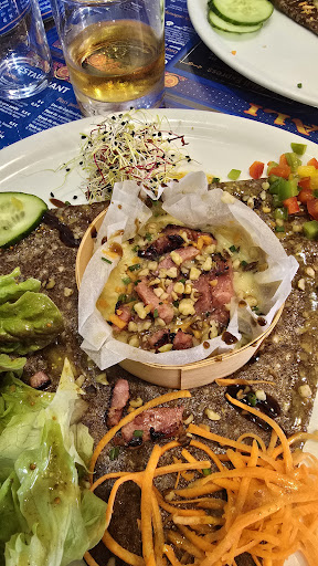 The place was lovely, overall!! People were nice, the theme was AWESOME( If you speak French, make sure to visit the place on Thursday, where the storytellers go around each table telling them a French traditional story and it's enjoyable!) , the food was satisfying. I took away a star just because the food was served pretty late( I'm sure it was a packed time) and the dessert was a bit too sugary for me( it was still very delicious though!) It's a very authentic Bretagne dish, so totally worth a visit!