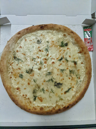 La pizza ? Ne vous attendez pas à manger à manger une vulgaire napolitaine faites avec de la farine Netto : ici, on fait de la romaine, et de la bonne ! C'est comme si on avait fait une pizza avec de la qualité, une bouchée de qualité PURE, j'en voudrais en intraveineuse avant de mourir ! Autant la pâte que la garniture, messieurs, vous avez quelque chose à apprendre aux Italiens ! ( A moins que vous soyez italien ?! )La pâte ne croustille pas mais elle est légère , la pizza est fine donc agréable à manger , la garniture du fromage est parfaitement équilibrée et les brindilles d'aneth ( je crois ) ne sont pas là que pour la décoration , ça participe à l'équilibre général : prise de risques gagnante !