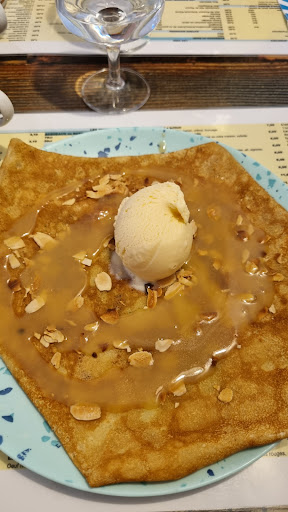 Read moreBonjour. Nous avons passé une soirée avec ma chérie en nous posant des questions. 1h40 pour pouvoir manger deux crêpes chacun, normal ? Je ne crois pas. Je fais abstraction que le serveur a pris 10 minutes pour aller chercher un stylo ( chose très difficile, c'est vrai ). Pour commencer, les crêpes sucrées étaient froides, fades, élastiques, dur à mâcher. Nous qui pensions prendre du plaisir, ce fût une mauvaise surprise! Le caramel beurre salé ( LA BASE DE LA BRETAGNE ) sur la crêpe n'avait pas de goût, et sur la crêpe de ma madame, la banane était passé car en effet il y avait un fort goût d'alcool, ce qui fait qu'elle n'a pas du tout apprécié sa crêpe, j'ai du l'aider à la terminer. De plus, nous avions eu l'impression de manger des crêpes industrielles pour le froment. Je viens dans une crêperie pour manger des bonnes crêpes et plus rapidement, cependant j'aurais été plus rapide à faire de bonnes...