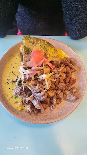 Die Vorspeise setzte dem Ganzen die Krone auf: Für 9 Euro bekam ich eine kleine Portion kalten Porree, der einfach gekocht und dann eiskalt aus dem Kühlschrank serviert wurde, begleitet von zwei Maischips. Das ist weder eine Vorspeise noch ein Gericht. Nach einer unerträglichen Wartezeit von 1 Stunde und 50 Minuten kam das Hauptgericht. Der Lachs in meinem Fischcurry war roh. Obwohl roher Lachs essbar ist und manche ihn mögen, war dies in diesem Kontext unangebracht und enttäuschend. Hinzu kam, dass die „Suppe“ kaum mehr als Lachs und zwei Paprikastreifen enthielt. Die unverschämten Preise für diese kleinen Portionen setzten dem Ganzen die Krone auf. Das einzig Positive: Die Pizza war in Ordnung.