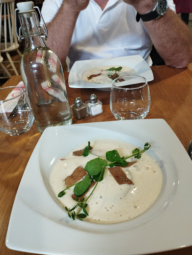 Read moreLe personnel est sympathique et le service efficace. La carte n'est pas actualisée car j'avais choisi noix de saint Jacques aux cressons et j'ai eu un mélange de purée de carottes et de crème. Le serveur m'a dit que j'avais dû avoir une vieille carte ! La façon de tripoter la viande crue m'a dérangé. La propriétaire était en train de découper un morceau de côtes de bœuf dans un gros morceau dans la salle sans gant. Puis avec les morceaux dans les mains elle allait de deux côtés actionner des poignées de porte viande à la main. De cette même porte sortaient et rentraient les serveurs avec la vaisselles sales. Puis toujours sans se laver les mains ramassait une étiquette autocollante sur le sol. Puis va à la caisse encaisser les clients. Recevoir les billets et les pièces de monnaie. Toucher sans arrêt son écran d'ordinateur. Tripote son nez sans arrêt. Puis se retourne pour couper le jambon cru. Prendre la charcuterie sans couvert pour préparer les ardoises de charcuterie. Puis va ramasser les bouteilles vides bouger les caisses de vin sous le comptoir avant de continuer à faire les ardoises de charcuterie. Il faut quand même faire un...