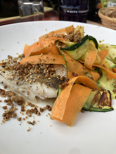 Impeccable food. I had the fish of the day and it was remarkable. The carrots and zucchini accompanying it were extremely tasty with nice dusting of bread crumbs on top. The fish itself was delicious. The mussels were the best mussels I have ever tasted. The onions on top were extremely scrumptious. The dessert strawberry mousse was very light and delicious - perfect amount of sweetness. The service was very kind and they let us move inside on the couch when we got cold. Very kind workers and...