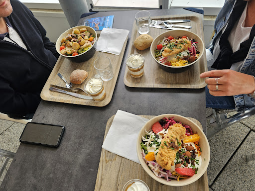 Read moreRistorante interno all'acquario di Oceanopolis. Pratico perché funziona come un self-service: si prende vassoio, coperti, bevande e tutto quello che è freddo e poi alla cassa oltre a pagare si ordina le pietanze calde. Ti forniscono un badge che suona per avvertirti quando i piatti sono pronti. Servizio velocissimo, i piatti sono preparati in anticipo e scaldati e assemblati al momento. Per questo ho dato 3 stelle alla cucina. Buono ma nulla di spettacolare. Se ci fosse stato bel tempo, avremmo optato sicuramente per l'area picnic disponibile nel giardino della struttura portandomi il cibo da casa. Però rimane una soluzione pratica, soprattutto con i bambini perché si può mangiare in fretta e trovare anche menù adatti ai più piccoli....