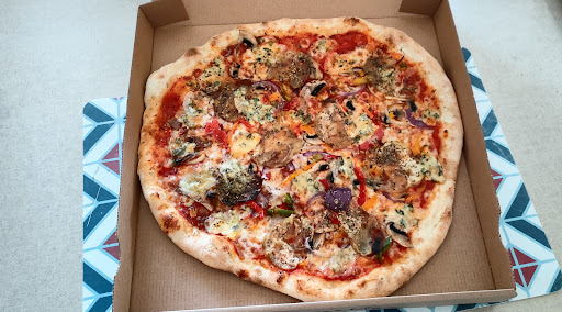 Read moreNe vous laissez pas duper par le nom d'allure potache, la pizza que j'ai pu goûter( la "repentie" végétarienne) était tout simplement savoureuse. Évidemment bien garnie et bien préparée. La qualité est au rendez-vous et comme dit dans d'autres commentaires, la pâte est vraiment bonne. J'apprécie particulièrement que le choix végétarien ne se résume pas à une seule pizza et que les recettes soient assez recherchées (sachant qu'il est toujours possible de rajouter un ingrédient).