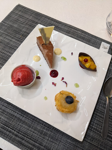 Sans plus Nous venions manger pour la St Valentin, arrivées à 19h30, on nous dit que la carte habituelle n’est pas proposée alors que l’on avait bien demandé lors de la réservation et que l’on nous avait affirmer le contraire. Ensuite, une heure entre chaque plat, sans compté les amuses bouches oubliés, le digestif inclu dans le prix du menu dont on a pas vu la couleur et le serveur qui ne semble pas s’en soucier, aucune excuse, malgré le petit geste sur l’addition (-2€). Mention spéciale pour les courgettes servies avec le magret en plein mois de février... Plus de 3 heures à table pour pas...