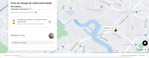 12h50 - UberEats me dit que Roast It/Baguette a fini de préparer la commande (j'ai fait des captures d'écran tout du long, dommage).