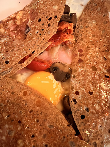 Bouquet final au dessert, la crête Suzette qui reste littéralement accrochée à l'assiette. J'appelle le responsable, et il me dit que ca a manqué de beurre. C'est sûr, je demande donc si c'est normal et j'attends que le responsable me propose de la refaire & à ce moment-là, une employée vient m'interpeller en me disant que je n'avais qu'à plier ma crêpe quand elle a été servie et que c'est comme çà que ca se mange et qu'elle est normande. Bref, on se retrouve à 6 locaux quarantenaires à être circonspect qu'une normande de 25 ans nous apprennent à manger une crêpe. Le ton monte et il s'ensuit un échange calme avec le responsable qui a dit qu'en effet, il y avait un soucis. Il a refait une crêpe Suzette de qualité par la suite.