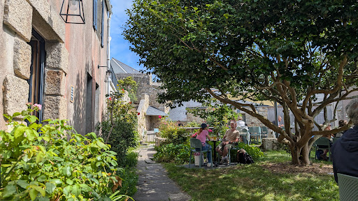 Read moreJ'ai été très déçue par ce restaurant qui avait tout l'air d'être the place to be... Réception glaciale tant au téléphone pour réserver qu'à notre arrivée sur place, on s'est fait aboyer dessus en demandant s'il était possible d'être installé.e.s dehors plutôt qu'en salle. Bande son insupportable mêlant house infâme, reggae ou autres alors que pour le coup le décor (et c'est bien tout) est charmant. Quant à la cuisine, pour moi ce n'en est pas, j'ai pris le brebis frais d'Ouessant en entrée, j'ai effectivement reçu un brebis frais accompagné de tomates cerises et de basilic, c'est bon mais ce n'est pas de la cuisine. En plat, comme il n'y avait pas de homard ni de lieu, j'ai pris les légumes ouessantins œuf farz et risotto, idem, j'ai reçu ce que j'avais demandé, à savoir une assiette avec un œuf au plat, un bout de courgette bouilli, une carotte, une cuillère à soupe de farz (bon) et une cuillère à soupe de risotto (très bon), pas une petite sauce, rien, nada. C'est sec ! Comme la patronne. Dessert : moelleux choc + glace, attention, effort de présentation !!! : il y avait 3 petites gouttes d'un coulis de je ne sais quoi (trop peu pour goûter). Je n'y remettrai...
