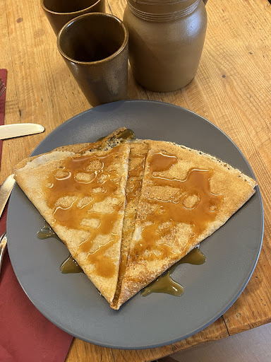 È da circa un anno che ha cambiato proprietari al timone adesso ci sono due ragazzi giovani lei la cuoca lui gestisce il bar con l'aiuto di una ragazza ai tavoli. Il menù è cambiato così come la sua formula, per anni la vecchia proprietaria proponeva a circa €13,50 tre crepes due salate una dolce è un bicchiere di sidro. L'attuale menù comprende invece solo due crepes la prima salata di grano saraceno, la seconda dolce. La tipologia di crepe Si differenzia rispetto alla vecchia proprietà perché un po' più grandi quindi in parte va a colmare la differenza delle tre crepes. La varietà dei ripieni e forse è un po' scarsa, si potrebbe fare qualcosa di più. Inoltre il ripieno dovrebbe essere un po' più abbondante considerando una pausa pranzo con una sola crepes salata. Il locale e praticamente lo stesso molto rustico piccolo con un bagno molto carino completamente rivestito in legno. Bella l'idea di lasciare post it in bagno per scrivere un pensiero è appiccicarlo alle pareti. Attenzione che non hanno il POS quindi il pagamento è solo in contanti, spero per tutti noi che presto si doterrano dell'apparecchio perché non sempre ormai giriamo con molti soldi in contanti in tasca. Complessivamente la qualità dei prodotti offerti è buona. A mio avviso Visto che il locale è piccolo con poco sforzo si potrebbero ottenere dei grandi...