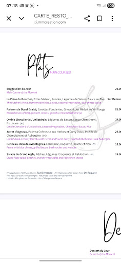 Dès le départ, l’accueil a été très désagréable. La même serveuse nous avait déjà reçus au spa en nous disant sèchement de revenir 10 minutes plus tard alors que nous étions à l’heure. Au restaurant, le repas a été catastrophique Sans prévenir quand on nous donne les cartes, on nous explique au moment de commander que plusieurs plats de la carte choisis par nos amis ne sont plus disponibles car le restaurant ferme le lendemain...Résultat : une partie de la table se rabat sur le 2e choix du menu alpage: la raclette car la fondue n’etait plus disponiblenon plus. Celle-ci nous est servie avec de la charcuterie sous vide, peu garnie, et surtout un fromage qui n’avait rien à voir avec de la raclette (de l’avis general des 7 personnes qui l’ont pris dont certains sont pourtant très habitués à en manger). Le goût, la texture et l’aspect ne correspondaient pas, et encore on ne se serait pas plaint si cela avait été le seul problème mais il était surtout MOISI sur sur les deux côtés (voir photos). La serveuse a osé dire en me prenant de haut et en rigolant que "c’était normal c’est du fromage". Heureusement, Mathias le second serveur a reconnu que non, il n’y avait rien de normal et nous l’a changé, mais cela reste impardonnable pour un établissement de ce standing.