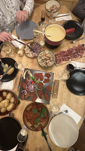 Nous nous sommes presque cru à la maison entre la décoration originale, la sympathie des serveurs, la musique de fond pas trop forte et les bons four rire entres amis autour d'un fromage qui cuit.