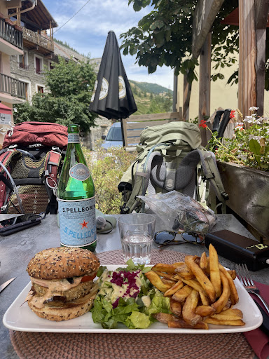 Ô Bô Bar, halte enchantée au détour du majestueux GR58… ✨ Là, dans un écrin de convivialité, j’ai succombé aux délices d’un burger végétarien, aussi généreux que raffiné, escorté de frites maison dorées comme des rayons de soleil capturés. Chaque bouchée, une caresse pour l’âme, un festin pour les sens.