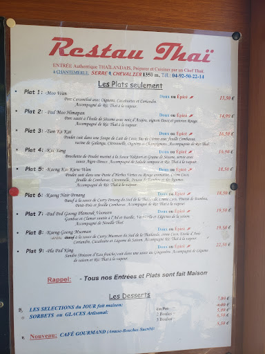 This is our go to place whenever we're skiing in Serre Chevalier: a cozy little restaurant just a few steps from the main ski lift of Chante-Merle. The service is warm and friendly, and the food is out of this world, at least this part of the world: my absolute favorite is the "Nouille 2/Pad Kapraw": triangular noodle sautéed with chicken, and of course, the Pad Thai ("Nouille 4") rival the best of Bangkok. The lady chef must have some powerful magic because she serves very authentic Thai dishes in this remote part of the world with its shortage of Asian ingredients; she told me she has to go all the way to Grenoble to resupply!