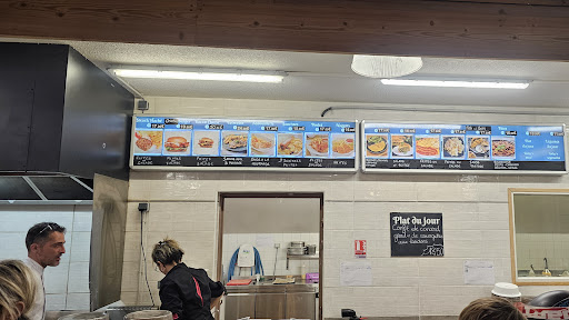 Si può scegliere tra vari piatti quali hamburger davvero buonissimi sia nel piatto che nel panino, salsicce e patatine, andouiette, lasagne, torte salate di ogni tipo, torte dolci ed altri dolci fatti in casa, tutto servito in porzioni piuttosto corpose.