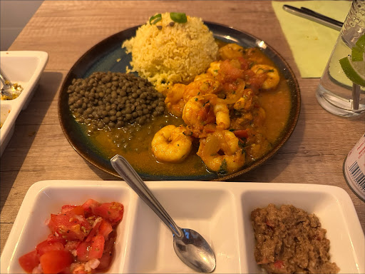 Delicious food and excellent service! I’m glad we happened upon this restaurant and decided to stop in. We split the samosas for an appetizer and the main shrimp dish. Was the perfect amount of food for two. The two homemade chili pastes packed a punch and were delicious. The peanut butter paste and tomatoes that came with the shrimp dish paired beautifully. Last of all we had free...