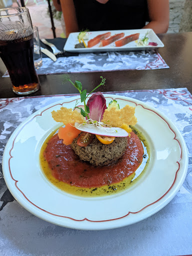 Read moreSaturday last, a friend and I had been driving around La Provence Verte for hours. It was 1pm. We were starving. Because the village of Correns is all about growing organic foods we chose to try to have lunch there. The town square had two chancey looking cafés. The owner of the less chancey told us to go across the road to the Auberge du Parc and to hurry because they might close early. From outside this hotel/restaurant looks older than dirt and maybe not too savory. But inside! It's a romantic poem. Decorated with taste yet not pretentious. The garden restaurant is large and was crowded with happy lunchers. The woman waiter was in such a hurry she asked us to wait for a table. We did that. She set us up in no time and brought out bread and water and a bottle of the delicious local rosé. I ordered the lunch at 30 euros. Foie gras, roast lamb and nougat glacé. The best of everything! Just the best! My friend had the organic menu. A lovely mixed salad, chicken tajine style and a special home made caramel cream in a glass. We loved it all. At the end of our meal, the rail thin chef and his rail thin wife came out to fold up cushions and get the outdoor dining room ready for the dinner crowd, I told him how impressed we were with his cuisine. He smiled a modest grin and nodded "merci". Then I said, "I have never eaten a better nougat glacé. Anywhere." He replied, "You are not the first person who has said that to me." I said I understood why. He then set about telling me how he makes it. "You start with nougatine" I don't know what nougatine is. Turns out it's crunchy like peanut brittle only instead of peanuts and sugar it's made of honey and almonds. After smashing the nougatine to smithereens, he adds all the rest of the ingredients - including "a confetti of fruits confits" (glazed fruit bits). It's crunchy and creamy and fruity honey ice cream. Put Auberge du Parc at Correns on your bucket list. You can sleep there too. They have 5 rooms. Average price 89 euros. ($104). Quiet. Elegant, Unostentatious and the food. And the food! And there is a pool and what's more Angelina and Brad lived in Correns for a few blissful years before folding up their tent and moving on. Correns remained...