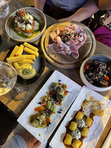 Côté menu : Une carte de tapas délicieux qui permettent de partager les saveurs (et de faire goûter un peu de tout aux enfants). Alors que bien souvent les tapas relèvent plutôt de l'apéro amélioré, ici les saveurs et les textures sont au rendez-vous. C'est très bistronomique et super qualitatif. De beaux produits travaillés avec goût. Pour les desserts, de vraies assiettes travaillées, soignées et aux parfums subtiles. Même en ayant plus faim, nous n'avons pas pu résister à déguster ces desserts délicieux.