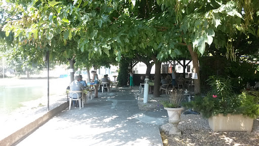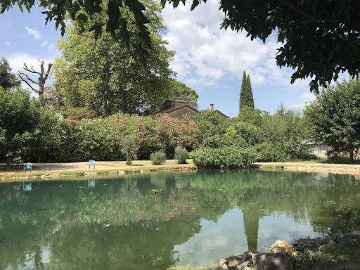 We discovered this lovely spot by accident while staying a week in Pignans. The location next to the fish pond is very relaxing, being fresh and cool for lunch time. If you want you can fish; although in our case we watched a family enjoy the opportunity from our waterside table, under the trees. We had the set menu: a delicious salad of leaves, fig with cheese, bruschetta and cured ham; then bbq grilled trout that came with very tasty, double cooked rustic chips, and some simple courgette. The fish was tender, moist and very tasty. There was a desert included, of fig tart, crepe and ice cream. We had a carafe of the local rose. The owners are lovely. They welcomed us kindly, despite our limited french. We strongly recommend this as relaxing half...