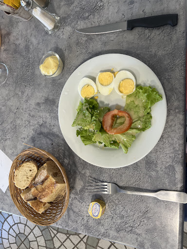 Ce midi on a pris oeuf-mayo en entrée Tartare de boeuf en plat , et paris-brest en dessert! Les produits sont bons et trÚs bien cuisinés on s'est régalé !