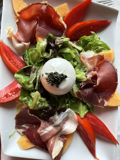 Read moreNous étiez dans le village pour le week-end. Nous nous sommes arrêté le midi pour y manger et honnêtement nous n’en sommes que RAVIE 😍 Personnel très gentil et accueillant, une dame super mignonne et le repas est très bon! Entrée : -Salade, tomate, jambon, melon Burrata EXCELLENT (et belle présentation). -Charcuterie (très bon). Plat: -Civet de porcelet + frite (Incroyablement bon je reviendrais dans le village que pour le civet lol). -Côté de porc + petits légumes (Bon) Dessert: -Peche Melba (très bon et très jolie) -Nougat Glacé (très bon et très beau aussi) Un super restaurant qui a avoir beaucoup de...