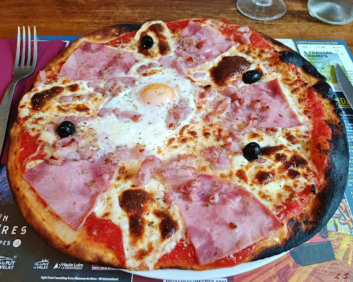 Une pizzeria bas de gamme. MalgrĂ© l'offre allĂ©chante d'une pizza cuite au feu de bois, tous les produits servis ici sont basiques voire bas de gamme. La pĂąte n'est qu'un banal mĂ©lange farine/eau. Pas de levain, de pĂąte qui prend le temps de monter. Du coup, les pizzas sortent cramĂ©es du four. La sauce tomate est un vulgaire concentrĂ© en boĂźte, pas mĂȘme rehaussĂ©e de quelques herbes pour donner un semblant de goĂ»t. Les olives noires sont les pires que l'on puisse trouver dans le commerce (je vous invite Ă chercher sur internet la mĂ©thode pour faire noircir les olives vertes sans passer par la maturation naturelle). Le pain servi le soir doit ĂȘtre tranchĂ© du midi tellement il est sec. Bref, si vous ĂȘtes Ă la Chaise-Dieu, que vous chercher juste Ă vous restaurer, cela fera le job. Par contre, ne vous attendez pas Ă dĂ©guster la...