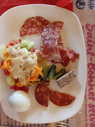 Read moreVenant à la chaise-dieu par les trains de la découverte d'Ambert. Nous avons pris un chemin avec une personne en fauteuil roulant électrique à grosse roues et des chiens, 15min a pied. Quelques cailloux quand même, donc pas pour tout les fauteuils. Ça descend bien pour y aller, donc au retour ça remonte bien. Mais ça se fait très bien. . Vous pouvez y aller en voiture également par la route. Il y a un beau point de vue sur la chaise dieu sur ce chemin. . Nous avons été très bien accueillis par le gérant. Il a su adapter les tables pour que le fauteuil passe en dessous. Les chiens ont eu une gamelle d'eau à notre arrivée. Merci. Nous avons très bien mangé . Système de buffet pour entrée, plat et dessert. Choix variés. Lieux calme avec vu sur les chevaux au loin dans les champs. Beau restaurant. Nous...