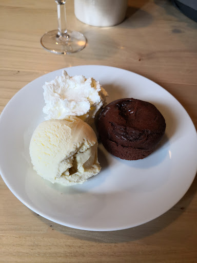 Read moreDe passage Ă La Chaise Dieu que l'on m'avait conseillĂ© durant mon trekking, je me suis arrĂȘtĂ© Ă ce restaurant que une commerçante m'avait chaudement recommandĂ©e. Qu'elle magnifique surprise. J'ai choisi le plat vĂ©gĂ©tarien du jour, un Dahl, un gĂąteau fromage qui Ă©tait excellent, comme le reste et des lĂ©gumes. En dessert j'ai choisi, le moelleux au chocolat avec sa boule de vanille, crĂšme chantilly et une tisane. Le tout, menu, pour 15 euros. Une qualitĂ© pareil avec des produits locaux et frais Ă ce prix dans une ville touristique c'est exceptionnel. Et croyez moi ou non, des restaurants et autres j'en essaie beaucoup depuis que j'ai choisi la vie de nomade Ă pied. Merci pour l'accueil Ă ces deux jeunes f-Ăąmes et d'avoir permis Ă mes papilles de se dĂ©lecter. Un...