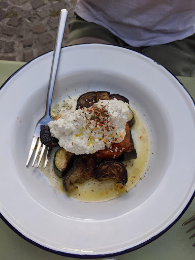 Read moreQuatre ou cinq fois que je viens et à chaque fois je ressors déçue par le rapport goût/quantité/prix. La dernière fois j’ai pris des troffie au pesto, pommes de terrre, haricots verts et burrata crémeuse; les pâtes n’avaient sûrement pas été salées à la cuisson du coup elles manquaient de goût, le pesto ne se sentait pas vraiment et il y avait quelques legumes qui se battaient en duel. Heureusement qu’il y avait de la burrata pour justifier un peu les 18€. En dessert, gorgonzola à la cuillère, pommes, caramel beurre salé et crumble; pour 9 euros c’était littéralement 1 cuillère à soupe de fromage, un huitième de pomme crue, l’équivalent d’une cuillère à café de crumble…je comprends que le gorgonzola soit cher mais quand même… un peu plus de crumble ou de pomme cuite ça donnerait au moins une impression de quantité ! Bref, c’est dommage car pourtant j’adore le concept : le lieu est joli, la carte sur le papier fait envie, ils bossent avec des producteurs productrices locaux, la nourriture est de saison, la déco des toilettes est géniale. Si les assaisonnements et les quantités étaient un peu retravaillés je reviendrai...