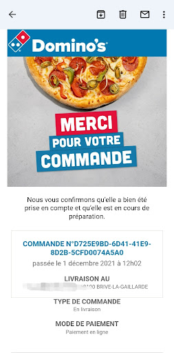 Ma mère et moi avons récemment passé commande chez vous car nous apprécions vos pizzas et avons déjà commandé a plusieurs reprises en livraison ou en emporter et jusqu'ici on avait pas eu a ce plaindre plus que sa mes la dernière commande c était une catastrophe d une vous avez mit plus d une heure pour livrer 2 pizza et de deux évidemment elle sont arrivés presque froide(commande passée hier vers 20h05 et livré vers 21h20 ) vous auriez mérité qu on les paye pas et quand vous le dites aux livreurs il vous répond que c normal car il y a du monde bref je suis désolé met pour moi c loin d être normal car une pizzeria doit mettre 30 a 40 min max pour livrer un client et non plus d une heure sinon a ce compte là ont appelle plus sa de la restauration rapide(fast food) psk a un moment donné faut pas prendre les gens pour des imbéciles si vous avez pas assez de monde pour travailler ce que je conçois vous pourriez embauché plus personnes pour vous adapter à la demande de la clientèle plutôt que de faire poireauter les client plus d une heure pour attendre leurs commande et d après d autres avis nous ne sont pas les seuls a qui cette mésaventure et t arrivé donc je serai vous dominos je m organiserait pour que sa n arrive plus après si vous êtes pas organisé c pas notre problème a nous les clients car a force de faire sa trop souvent vous allez perdre beaucoup de clientèle moi je dit sa je dit rien psk je trouve tout sa pas très commercial et que ses une honte de travailler de cet façon peut être mon commentaire changera pas grand chose a votre façon de travailler met j ai tenu a vous faire savoir mon avis sur votre façon de travailler car tout sa n est pas très sérieux et même si mes propos vous dérange je ne fais que relater la triste réalité car. Nous les clients on paye donc c ensuite a vous de faire des efforts pour offrir un maximun de service en un minimum de temps excuse moi d être aussi direct mes je souhaiter exprimer mon mécontentement sur je vous laisse méditer sur se commentaire et espère que cela vous fera réfléchir sur votre façon de travailler Je vous souhaite quand même une bonne journée