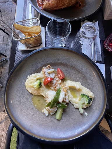 Swift service, and we were given a small, complimentary shared starter of pate & bread: it was very tasty and unexpected. Ordered the puff pastry (- house speciality!), one with steak, one with chicken/ Roquefort/ lardons. Both delicious and plentiful, creamy sauce too. Came with nice-sized portion of fresh lettuce & vinaigrette dressing. Wine by the glass was inexpensive and tasty. I highly recommend this restaurant; excellent service, value, taste, presentation,...