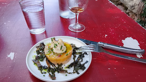Read moreUn peu déçu par ce restaurant, au cœur de Collonges, la Rouge, village magnifique au passage. J’ai préféré le projet sur le papier que dans l’assiette. Trop bonne idée de manger en extérieur à proximité de ce grand potager. Au moins, c’est frais, c’est local, tout comme le reste des produits de la carte. Démarche génial de faire travailler les producteurs du coin. Malheureusement, je n’ai pas ressenti d’émotion particulières dans les assiettes. Oui, l’endroit est agréable, oui, c’est plutôt bon, mais ce n’est pas non plus transcendant. J’aurais aimé qu’on nous explique encore plus le travail qui ait fait dans le potager . Malheureusement, on s’assoit, l’accueil est professionnel mais plutôt quelconque finalement… Le principe quand on va au restaurant, c’est aussi de pouvoir passer un vrai bon moment dont on va garder un souvenir impérissable. Ce n’est pas tellement le cas Ici. Les entrées étaient très bonnes, la terrine de truite avec sa mayonnaise à l’ail, tout comme le millefeuille de betteraves. C’est frais, c’est original, ça passe bien. Ensuite, Proposition originale également les spaghettis de courgettes. Là encore c’était bon. Un peu surpris car je pensais que ce serait chaud. Mais surtout, j’ai trouvé que pour le plat ça rendait le menu un peu cher quand même… Le dessert lui, le fondant aux noix, je m’attendais à quelque chose d’un peu plus gourmand. La portion n’était pas très grande et rien d’extraordinaire. Bref, convaincu par l’idée et le projet, mais pas entièrement par sa réalisation…...