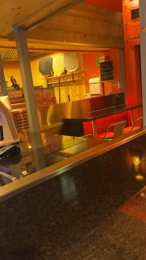 Des jeunes accoudés au comptoir parlent avec le proprio comme si ils étaient amis, pendant ce temps sa soeur nous sert deux verres de rouge car il y a un peu de retard. Cette attente se transforme en moment d'échange, pour dire vrai on écoute surtout ces deux artistes de la pizza nous raconter leur parcours depuis Paris jusqu'à Brive en passant par l'Italie.